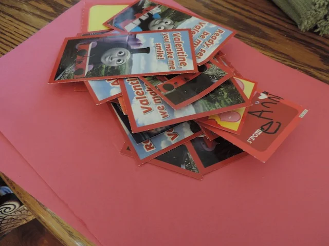 My toddler got a HUGE amount of Valentine's cards last week. In fact, my daddy sent him an entire box of Thomas cards.